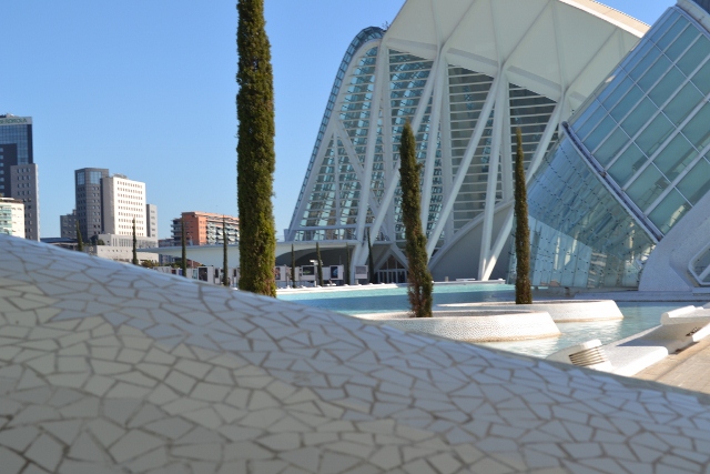 Another part of Valencia that we loved was El Parque Natural del Turia, which stretches 9km across much of the city and is located in the bed of the river Turia which was diverted in following a massive flood in 1957. The park is host to a wide diversity of trees, gardens, sports courts, paths and playgrounds and culminates at La Ciudad de Las Artes y Ciencias. If you read our last post, Setting Sail, this architecture may look familiar. It is the work of Valencian architect Santiago Calatrava, who was also the brains behind El Auditorio de Tenerife which we visited on our cruise. His work is modern, yet reminiscent of Gaudi at times, and also marked by the use of chipped, white tiles.