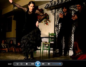 The second flamenco show, held at La Peña Flamenca Torres Macarena, was a much more intimate setting, with a raised stage and a few rows of seating on three sides. We were impressed by the dancer’s intense focus and incredible tranquil speed. Additionally, this show featured two singers which gave the performance a much more robust sound. In hopes of capturing the complex auditory component of flamenco, in addition to photos, we also took a short video which you can watch by clicking on the picture below.