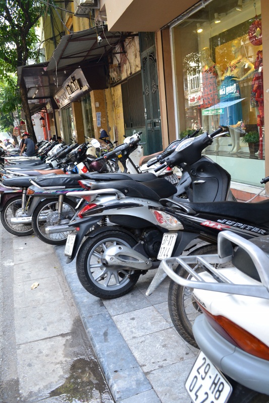 The word sidewalk shouldn’t be used in Hanoi. They are all unofficial parking lots, shops, or restaurants.