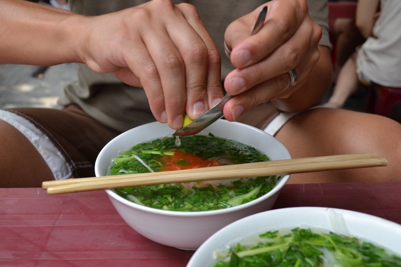 We didn’t know a whole lot about Vietnamese cuisine before arriving, and while we don’t have a firm grasp on the regional specialties just yet, we certainly got our fill of phở while in Hanoi. We were on a mission, just like Anthony Bourdain, to find the best bowl of phở around. We ate it every day for at least one meal, and came across a wide variety of styles. There is no way to decide on the best bowl of phở in Hanoi, but there are a few indicators that will let you know you’ve found a great phở spot, which Bourdain’s video explains in hilarious detail (watch it here). We couldn’t have said it better ourselves!