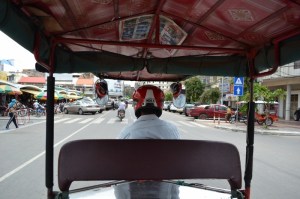For many travelers, Phnom Penh is merely a stop-over on the way to Siem Reap and Angkor Wat. For us, spending a few days in the capital allowed us to learn more about the country’s unstable and tragic political history in the last century. We decided to make an early start one morning and set off for an all-day power tour of the city. Our first stop was the Royal Palace. There are no official bus routes in Phnom Penh; we hopped aboard a tuk-tuk to get there. These motor carriages serve as the city’s public transit system.