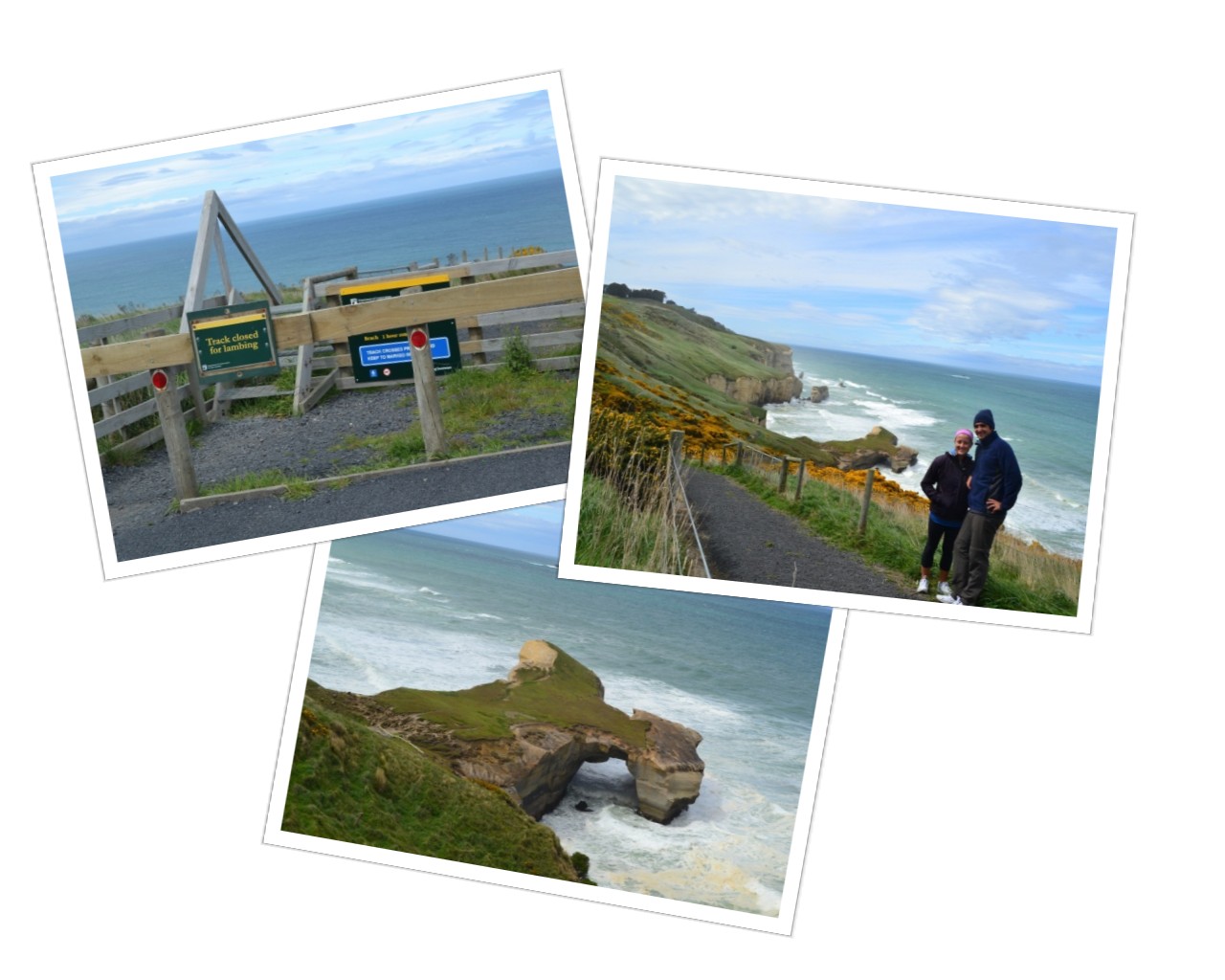 Our final day in Dunedin was spent exploring more of the country side. One of the greatest things about New Zealand is that you never have to drive far to get out of the city and into nature. The transition from buildings to open spaces happens quite quickly. Our first stop was a short hike down to some cool cliffs known as Tunnel Beach. We pulled into the trailhead parking lot only to find a sign posted which read “Closed for Lambing.” Many trails that we had encountered the day before had similar signs posted making it difficult to find a nice trail. Now don’t share this next part with anyone, but we did something naughty…we ignored the sign, climbed the fence, and hiked the trail anyway. Nothing like a little excitement to get the day started. For the record, we did not encounter any sheep or lambs along the way. What we did see was more majestic New Zealand landscape.