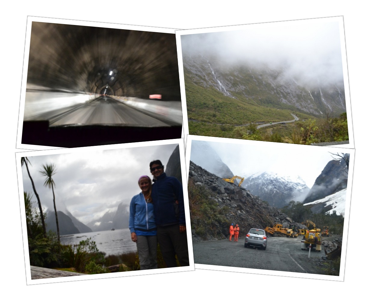 Next up? The Fiordlands. This area of New Zealand is famed as one of the most stunning scenic spots in the country. We believe these claims, however it was so rainy and overcast that we never got much of a chance to find out for ourselves. The town of Te Anau was our home base for exploring the greater area and well known Milford Sound. We were lucky to make it to the Sound at all because of a huge landslide (or landslip, as Kiwis call it) that destroyed the road a few days before we arrived. One afternoon, Highway 94 opened up and we made our way in and out within a window of a few hours. Homer Tunnel reminded us a lot of the Eisenhower Tunnel in Colorado, but much more rudimentary, with rocky dynamite-blown walls and sparse lighting. Possibly more beautiful than the Sound itself, were the countless number of waterfalls that cascaded down thousand foot rock faces as we descended from the tunnel.